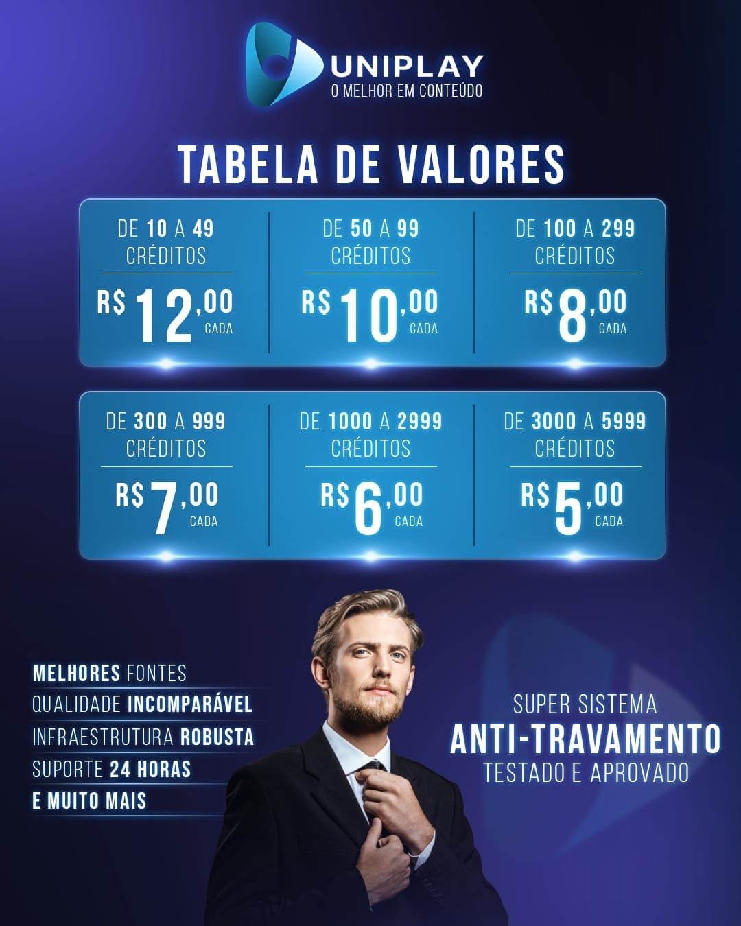 UniPlay (IPTV-P2P-OTT) ($12,00 Cada)